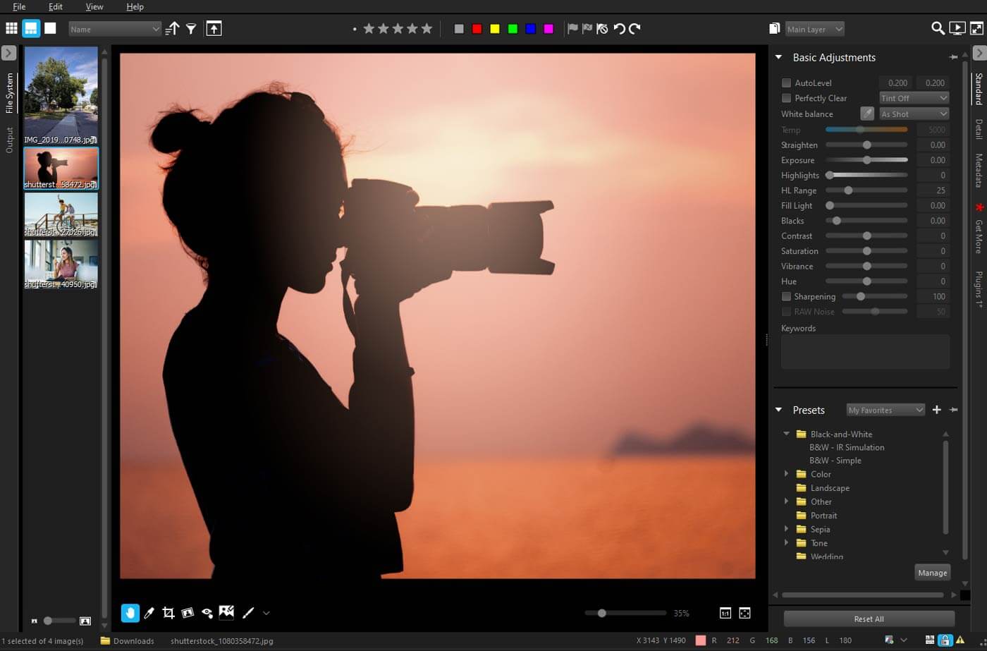 Faça correções e melhorias de nível profissional em fotos RAW ou JPEG e crie imagens HDR (High Dynamic Range) com o AfterShot™ 3 HDR. (Disponível em inglês, alemão e japonês)