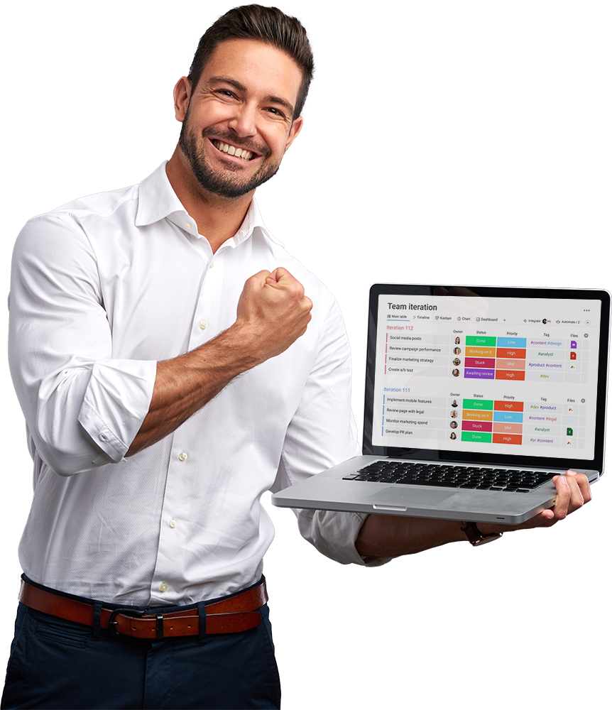Você não precisa dedicar centenas de horas em projetos de implementação ou aprendendo a melhor forma de usar a monday.com. O nosso time já percorreu esse caminho por você, fazendo com que o tempo entre a implementação e o uso seja o mais curto possível.